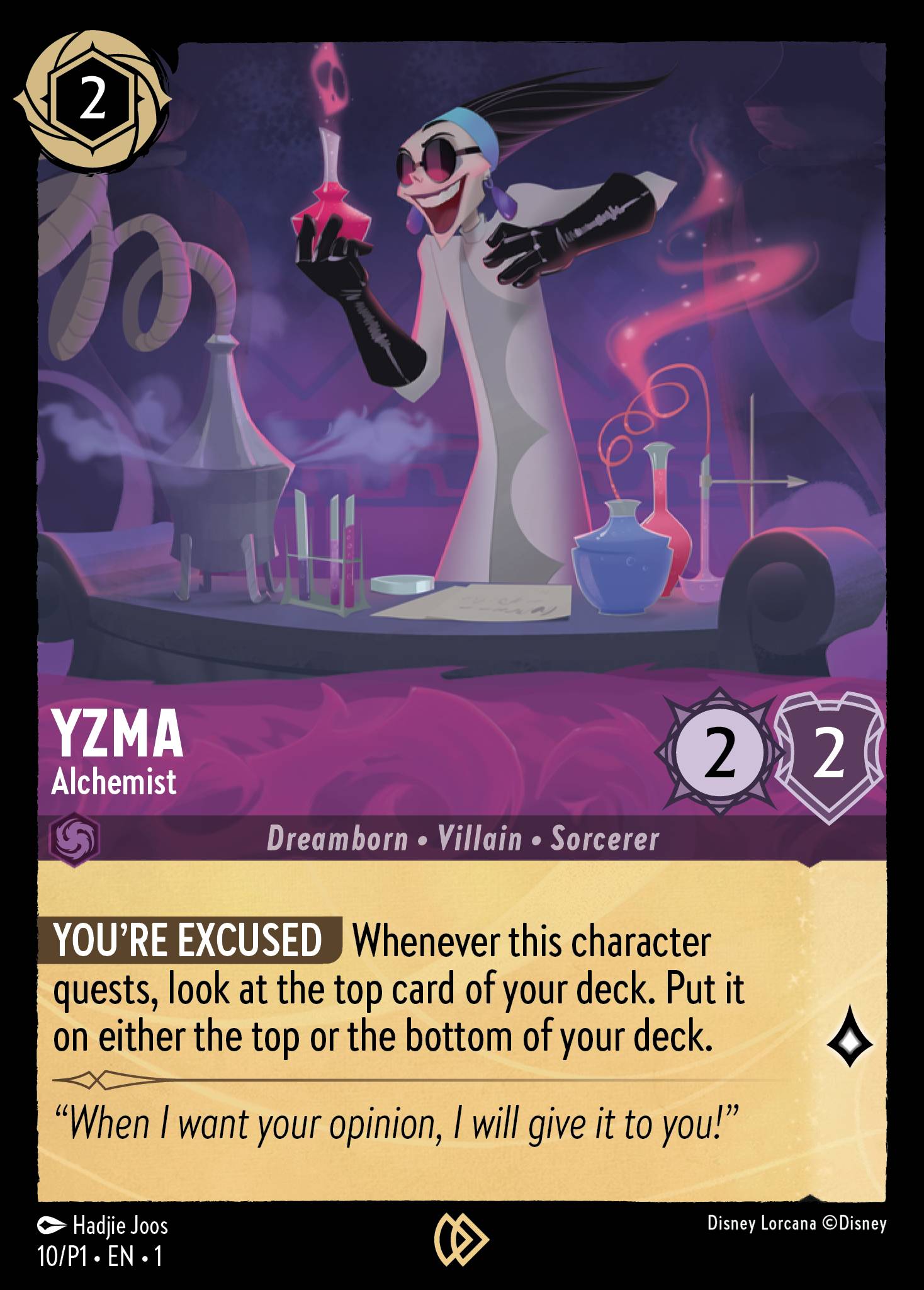 YOU'RE EXCUSED Whenever this character quests, look at the top card of your deck. Put it on either the top or the bottom of your deck.