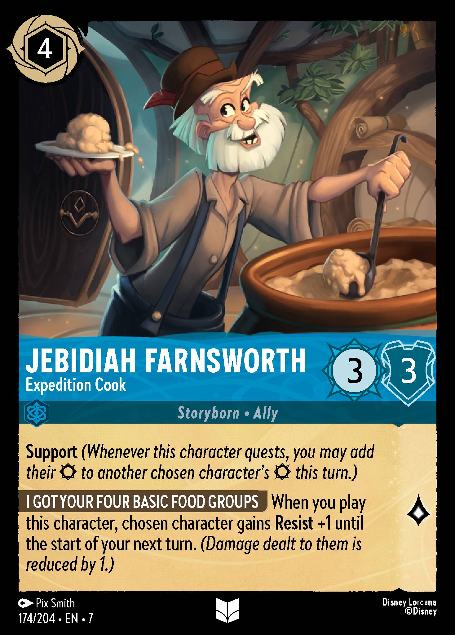 Support (Whenever this character quests, you may add their ¤ to another chosen character's ¤ this turn.) I GOT YOUR FOUR BASIC FOOD GROUPS When you play this character, chosen character gains Resist +1 until the start of your next turn. (Damage dealt to them is reduced by 1.)